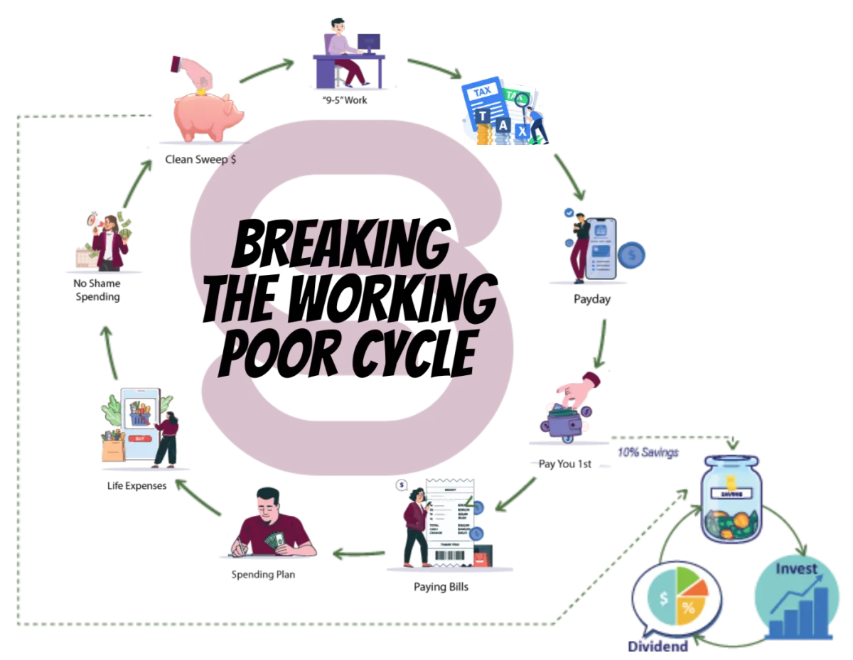 The “Working Poor Cycle” isn’t about laziness, it’s about lack of access. For generations, people have been taught how to earn, spend, and survive...but not how to build, grow, or protect. Inside this book, you’ll learn how to flip the script — from surviving off your paycheck to building a system that multiplies it. Nobody ever handed us the playbook, but page by page, this book will show you how to: